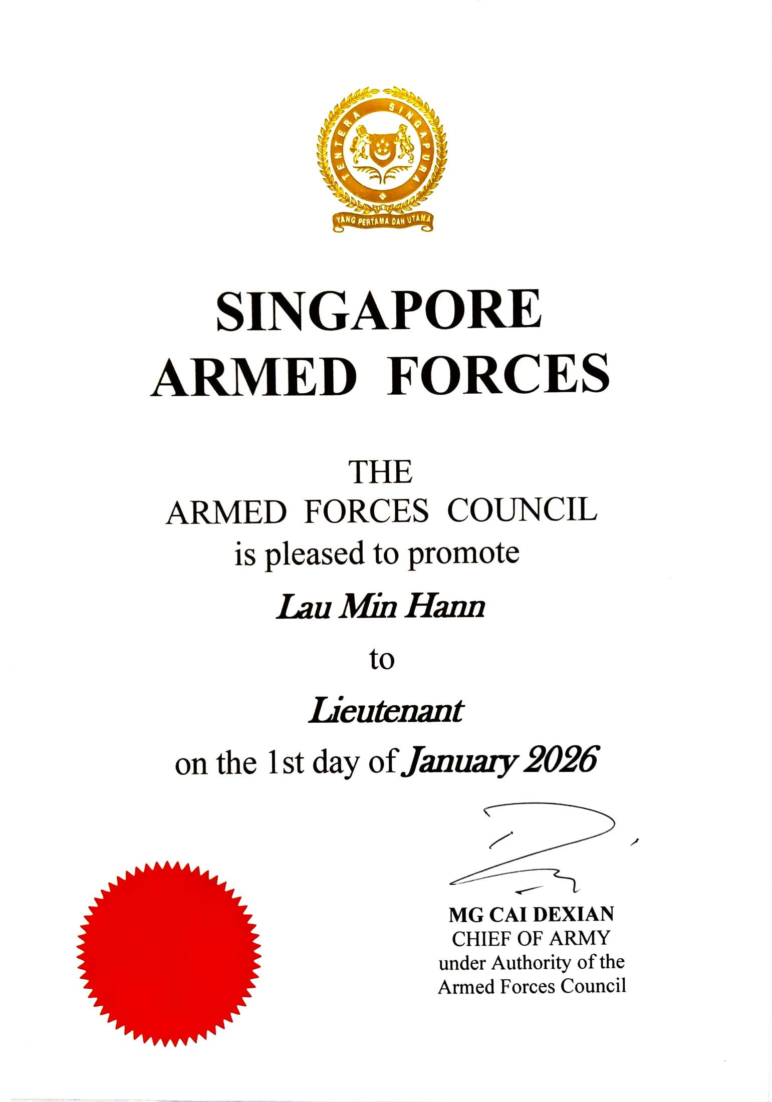 By the end of his life, he was an officer in the army who received an early promotion to the rank of Lieutenant for Deputy Battalion Operations Officer in 2026.